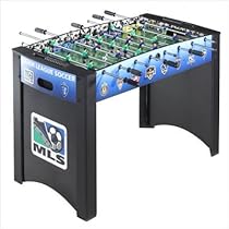 Bring all of the fun and excitement of Major League Soccer into your home game room with the Harvil MLS Striker Soccer Table! This 4 Foot table bears the official MLS logo alongside the emblems of some of your favorite Major League teams. Foosballs easily glide across the 1/4in MDF grass playing field while the fans and fieldboards give your game that authentic MLS Stadium feel! The Striker unit includes thick rounded legs coated in black laminate and 1/2in chrome-plated steel rods. Three goalies protect your goal and abacus scoring units help you keep track of who is number one! So strike down your foes and have a blast with the Harvil MLS Striker Soccer Table!