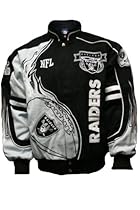 You're sure to stand out in a crowd wearing this jacket. This mid-weight snap-front jacket is made with a brushed cotton twill shell smooth sylon lining ribbed trim and two front slash pockets to keep your hands warm during those chilly game days. It's designed with 300k all-over high quality embroidered team graphics on the chest back collar sleeves and shoulders to separate you from the rest!