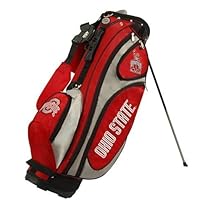 Designed with the serious golfer in mind the NCAA® team stand bag from Team Effort® features a 7-way top with a raised putter well and full-length dividers. The lightweight bag boasts an Izzo® dual strap and a sculpted hip pad for comfort. The bag also includes 5 front-facing zippered pockets a towel ring with an accessory strap a removable zippered rain hood an umbrella holder with a drawstring and an insulated beverage sleeve.